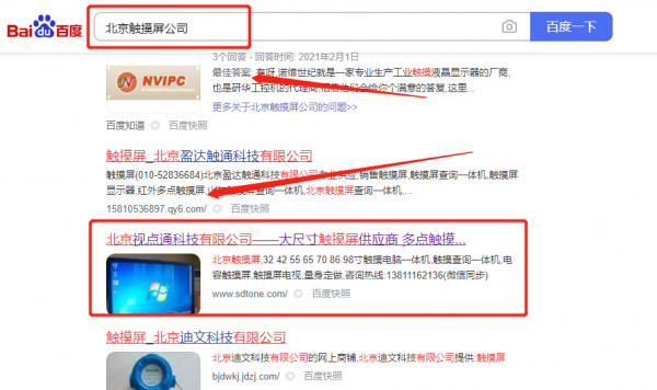 我們公司與北京視*通科技有限公司合作中,對這個公司所經營的觸摸屏這個行業提供了百度排名,與該公司的合作,更多的客戶讓我們公司為其提供百度快照排名,通過每一次合作,我們公司不斷完善自己,同時希望合作伙伴在經營的路上越來越好。