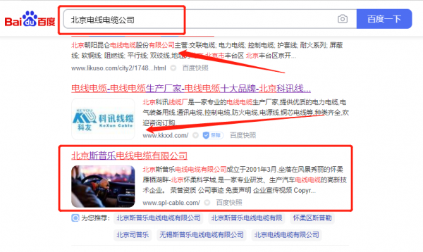 北京斯*樂電線電纜有限公司優化排名排名效果展示