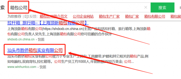 我們公司與 汕頭市勝僑箱包實業有限公司作中,對這個公司所經營的箱包這個行業的搜索引擎優化推廣積累了豐富的經驗;同時在該行業的搜索引擎優化推廣等多元化的領域中也有很多的成功的案例;但愿通過我們的合作,能夠幫助到合作伙伴在同行業中遙遙領先