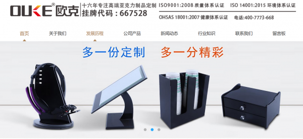深圳市歐克有機玻璃制品有限公司選用我司企業(yè)的網站設計產品,其seo關鍵詞為亞克力,. 定制有針對性的SEO優(yōu)化執(zhí)行方案,根據盈利模式和核心產品選擇更適合的精準關鍵詞。配備專業(yè)SEO優(yōu)化團隊,項目前期做好市場、企業(yè)定位、目標用戶、盈利模式分析 深圳市歐克有機玻璃制品有限公司成立于2008年,是經深圳市市場監(jiān)督管理局審核的有資質的公司。公司地址:廣東深圳龍崗區(qū)龍城街道五聯(lián)朱古石連心路121號3棟