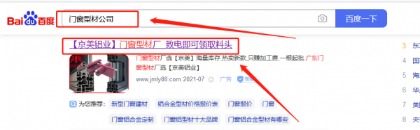 佛山市京*鋁業(yè)有限公司百度排名快照