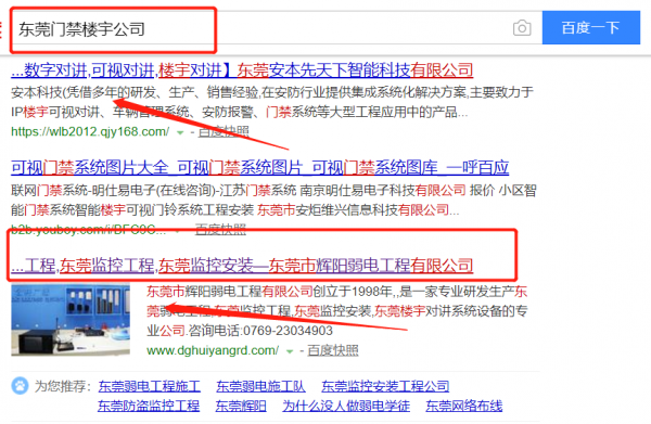 我們公司與東莞市輝陽弱電工程有限公司合作中,對這個公司所經營的門禁樓宇這個行業提供了百度快照排名,與該公司的合作,更多的客戶讓我們公司為其提供百度快照排名,通過每一次合作,我們公司不斷完善自己,同時希望合作伙伴在經營的路上越來越好。