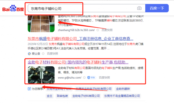 東莞市*助電子材料有限公司百度關鍵詞排名案例欣賞
