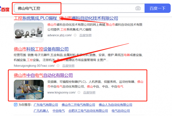 佛山市*自電氣自動化有限公司SEO優(yōu)化排名效果展示