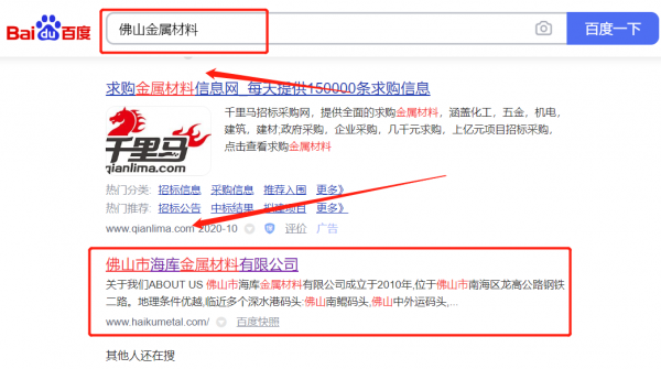佛山市*庫金屬材料有限公司網站SEO優化屏營銷+精準獲客