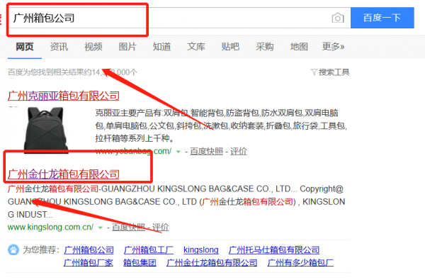 我們公司與廣州金仕龍箱包有限公司合作中,對這個公司所經營的箱包這個行業提供了搜索引擎優化推廣,與該公司的合作,更多的客戶讓我們公司為其提供搜索引擎優化推廣,通過每一次合作,我們公司不斷完善自己,同時希望合作伙伴在經營的路上越來越好。