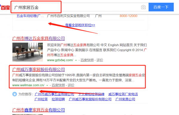 我們公司與廣州威萬事家居股份有限公司合作中,對這個(gè)公司所經(jīng)營的家居五金這個(gè)行業(yè)提供了百度快照排名,與該公司的合作,更多的客戶讓我們公司為其提供百度快照排名,通過每一次合作,我們公司不斷完善自己,同時(shí)希望合作伙伴在經(jīng)營的路上越來越好。