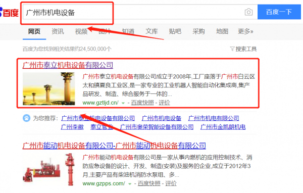 廣州市泰立機電設備有限公司與我司簽下百度霸屏協議