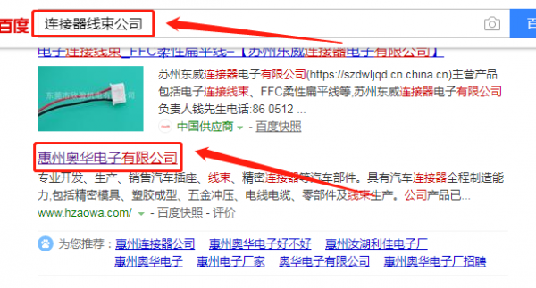 惠州奧華電子有限公司選用我司企業美容行業的網站優化產品,其SEO關鍵詞有專業開發、生產、銷售汽車插座、線束、精密連接器等汽車部件。從站內到站外,人工智能全新搜索優化技術,最快7天關鍵詞排名上首頁,利用互聯網營銷手法,多平臺,多樣化進行品牌內容鋪設,營造企業正面形象?;葜輮W華電子有限公司成立于2008年,是經廣東省惠州市市場監督管理局審核的有資質的公司,其統一社會信用代碼:91441302675196590J。公司地址:惠州市水口鎮新行政開發區10-1-2號。