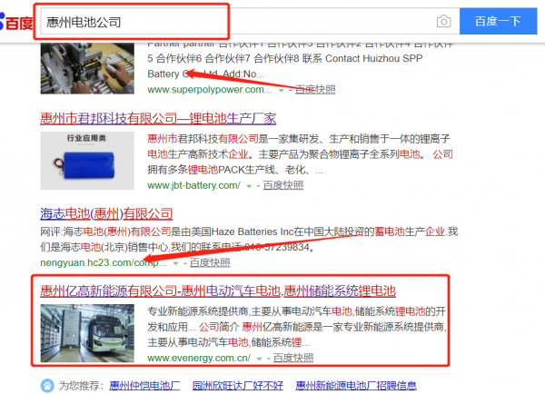 我們公司與惠州市*高新能源有限公司合作中,對這個公司所經營的電池這個行業提供了百度快照排名,與該公司的合作,更多的客戶讓我們公司為其提供百度快照排名,通過每一次合作,我們公司不斷完善自己,同時希望合作伙伴在經營的路上越來越好。