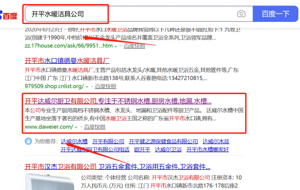 開平市*紅實業有限公司選用我司企業水暖潔具的網站優化產品,其SEO關鍵詞有水暖潔具。推廣效果直觀展示,智能化跟蹤分析;報表日日更新,實時查看,盡情掌握推廣動態,讓系統代替人工,自動化處理大量繁瑣操作將產品信息推廣到三千家營銷平臺,覆蓋海量客群。開平市*紅實業有限公司成立于2006年,是經開平市市場監督管理局審核的有資質的公司,其統一社會信用代碼:914407007**902861X。公司地址:廣東省開平市水口鎮水暖器材開發區東成路1號2幢。