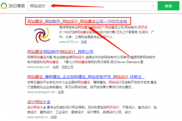 海洋網絡在360搜索引擎中優化關鍵詞處于第一位