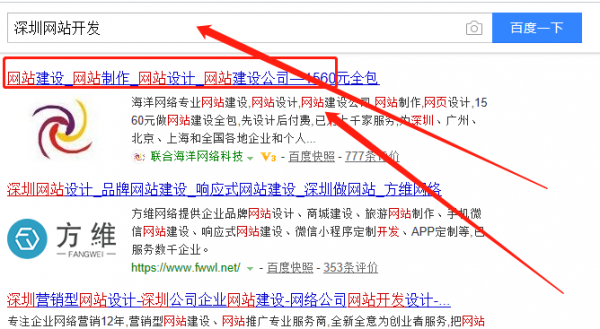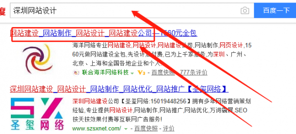海洋網絡在百度中網頁設計關鍵詞中排位第一