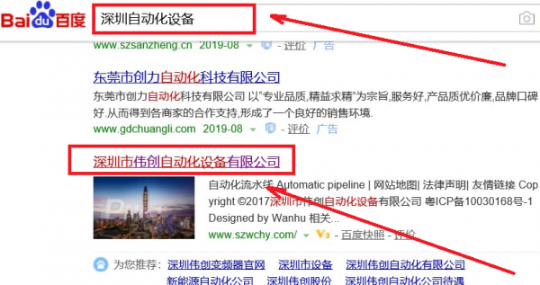 我們公司與深圳市偉創(chuàng)自動化設備有限公司合作中,對這個公司所經(jīng)營的自動化設備這個行業(yè)提供了SEO優(yōu)化,與該公司的合作,更多的客戶讓我們公司為其提供SEO優(yōu)化,通過每一次合作,我們公司不斷完善自己,同時希望合作伙伴在經(jīng)營的路上越來越好。