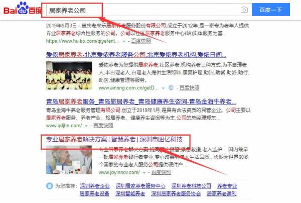 我們公司與深圳市昭億科技合作中,對這個公司所經營的居家養老這個行業的百度快照排名積累了豐富的經驗;同時在該行業的百度快照排名等多元化的居家養老領域中也有很多的成功的案例;但愿通過我們的合作,能夠幫助到合作伙伴在同行業中遙遙領先。