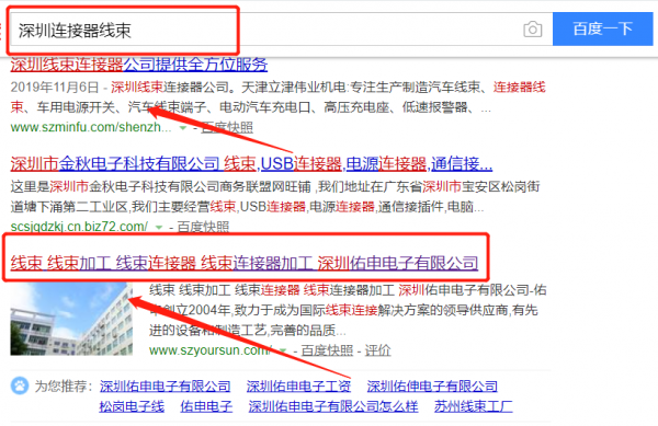 我們公司與深圳佑申電子有限公司合作中,對這個公司所經營的連接器線束這個行業提供了SEO網站優化,與該公司的合作,更多的客戶讓我們公司為其提供SEO網站優化,通過每一次合作,我們公司不斷完善自己,同時希望合作伙伴在經營的路上越來越好。