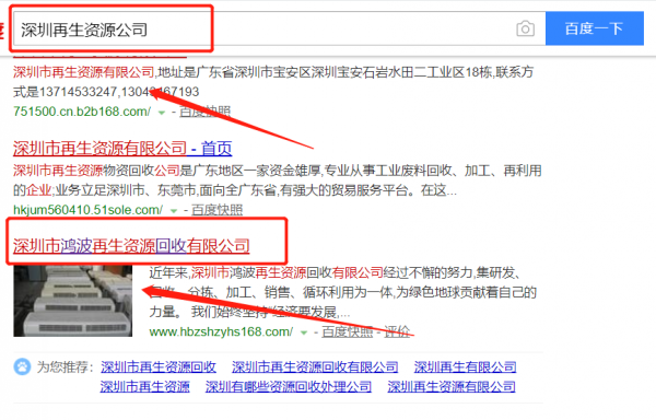 我們公司與深圳市鴻波再生資源回收有限公司合作中,對這個公司所經營的再生資源這個行業提供了百度快照排名,與該公司的合作,更多的客戶讓我們公司為其提供搜索引擎優化推廣,通過每一次合作,我們公司不斷完善自己,同時希望合作伙伴在經營的路上越來越好。