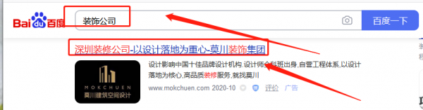 深圳市莫*建筑空間設計有限公司百度排名快照案例欣賞