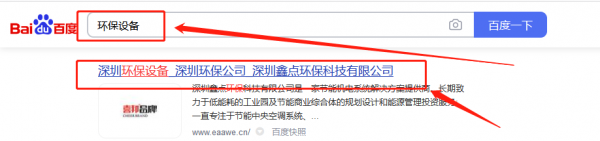 深圳鑫*環(huán)保科技有限公司百度快照排名案例欣賞