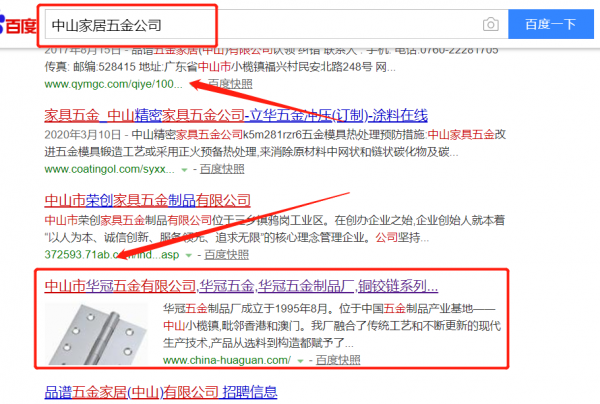 中山市華冠五金有限公司選用我司企業家居五金的網站優化產品,其SEO關鍵詞有家居五金。3-15天快速提升網站前五頁關鍵詞排名上百度首頁,幫助客戶增加流量,提高成交量,為您帶來更多潛在客戶,打造客戶品牌影響力。中山市華冠五金有限公司成立于1995年,是經中山市市場監督管理局審核的有資質的公司,其統一社會信用代碼:914420003382864131。公司地址:廣東省中山市小欖鎮裕成一路8號A、B、D幢。