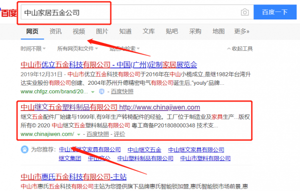 中山市繼文五金塑料制品有限公司選用我司企業家居五金的網站優化產品,其SEO關鍵詞有家居五金。3-15天快速提升網站前五頁關鍵詞排名上百度首頁,幫助客戶增加流量,提高成交量,為您帶來更多潛在客戶,打造客戶品牌影響力。中山市繼文五金塑料制品有限公司成立于1992年,是經中山市市場監督管理局審核的有資質的公司,其統一社會信用代碼:91442000738597528B。公司地址:廣東省中山市黃圃鎮大雁工業區圃靈路44號廠房一、二首層。