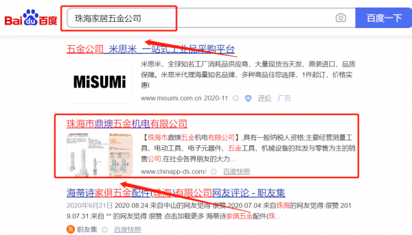珠海市鼎*五金機電有限公司選用我司企業家居五金行業的網站優化產品,其SEO關鍵詞有家居五金。覆蓋國內幾大主流搜搜引擎,占領電腦端、手機端,24小時快速獲取關鍵詞排名,搶奪流量。珠海市鼎*五金機電有限公司成立于2004年,是經珠海市市場監督管理局審核的有資質的公司,其統一社會信用代碼:9144040009**33563E。公司地址:廣東省珠海市金灣區紅旗鎮華興圍萬春園第二棟4#商鋪。