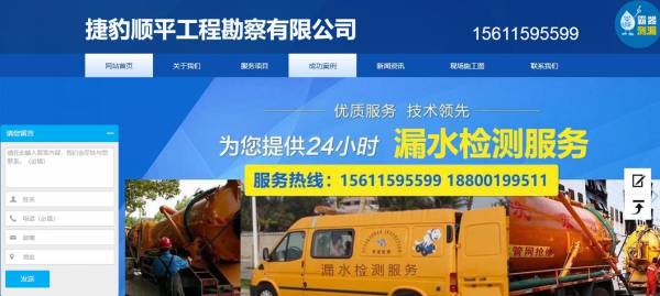 北京捷豹順平工程勘察有限公司選用我司企業(yè)工程勘察行業(yè)的網(wǎng)站優(yōu)化產(chǎn)品,其SEO關(guān)鍵詞有 管道查漏,地下管道查漏,地下自來水管道查漏,地下自來水查漏,自來水管道查漏,自來水查漏,消防管道查漏,地下消防管道查漏,水管查漏,地下水管查漏,管道測漏 ,地下管道測漏 ,地下自來水管道測漏 ,地下自來水測漏,自來水管道測漏 ,自來水測漏 ,消防管道查漏 ,地下消防管道測漏 ,水管測漏,地下水管測漏,管道檢漏,地下管道檢漏 ,地下自來水管道檢漏 ,地下自來水檢漏。其特點(diǎn)是用很合適的展示方式、展示效果、站點(diǎn)框架,把客戶及其用戶很關(guān)心的問題突出表現(xiàn);并以簡潔明朗的設(shè)計(jì)風(fēng)格,清晰展現(xiàn)公司水平實(shí)力,確保一秒抓住目標(biāo)用戶眼球,給用戶留下良好的第一印象。北京捷豹順平工程勘察有限公司成立于2019年,是經(jīng)北京市市場監(jiān)督管理局審核的有資質(zhì)的公司,其統(tǒng)一社會(huì)信用代碼:91110111MA01HU328R 。公司地址:北京市東城區(qū)廣渠門內(nèi)白橋大街22號(hào)北京工商聯(lián)大廈。