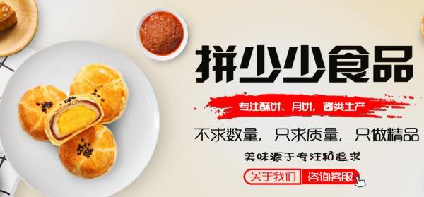 北海市拼*少食品有限公司坐落在美麗的海濱城市北海,是一家北部灣海特產產銷一體化企業。公司的主營產品有:各式醬類(海鴨蛋黃醬、海鮮醬、海鮮辣椒醬等),各式糕點(海鴨蛋黃酥、流心蛋黃酥、榴蓮蛋黃酥、海鮮酥餅、月餅等)。