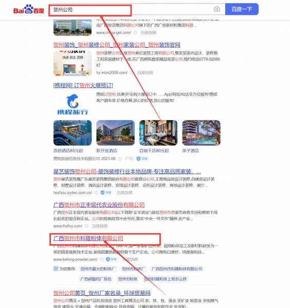 廣西賀州市科*粉體有限公司網站優化最快上詞效果展示