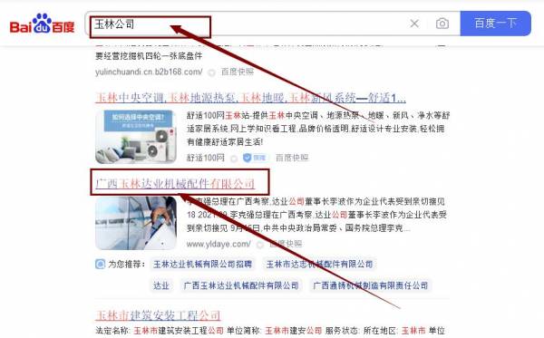 廣西玉林達*機械配件有限公司百度關鍵詞排名效果展示