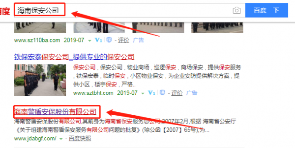 我們公司與海南警盾安保股份有限公司合作中,對這個公司所經營的保安公司這個行業提供了百度快照排名,與改公司的合作,更多的客戶讓我們公司為其提供百度快照排名,通過每一次合作,我們公司不斷完善自己,同時希望合作伙伴在經營的路上越來越好。