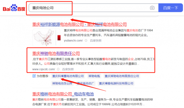 重慶神*電池有限責任公司快速排名到首頁無排名不收費
