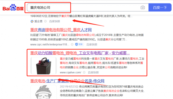 我們公司與重慶安*威蓄電池科技有限公司合作中,對這個公司所經營的電池這個行業提供了快速排名,與該公司的合作,更多的客戶讓我們公司為其提供快速排名,通過每一次合作,我們公司不斷完善自己,同時希望合作伙伴在經營的路上越來越好。