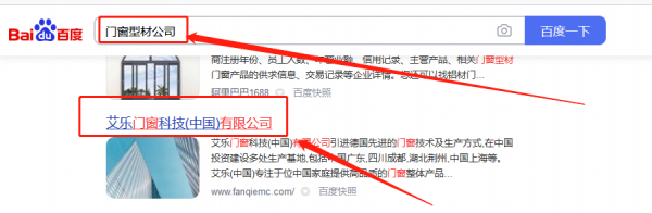 艾*門窗科技(中國)有限公司百度排名快照案例欣賞