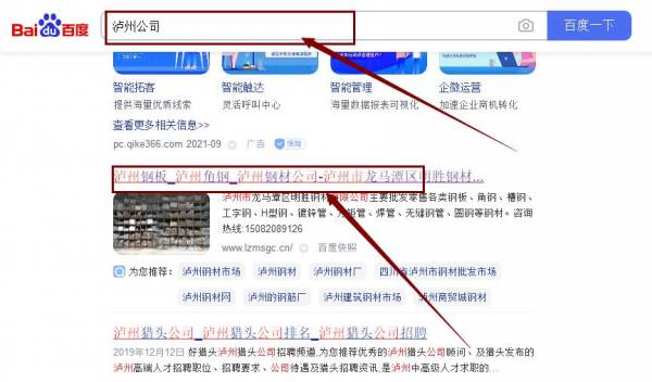 瀘州市龍*潭區明勝鋼材有限公司網站優化最快上詞效果展示