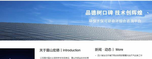 眉山宏*企業環境技術有限公司選用我司企業環境保護行業的網站優化產品,其SEO關鍵詞有眉山環評,環評公司,眉山環評公司,四川眉山環評公司,眉山節能評估,宏德企業節能環保,眉山宏*企業環境技術有限公司。其特點是用很合適的展示方式、展示效果、站點框架,把客戶及其用戶很關心的問題突出表現;并以簡潔明朗的設計風格,清晰展現公司水平實力,確保一秒抓住目標用戶眼球,給用戶留下良好的第一印象。眉山宏*企業環境技術有限公司成立于2002年,是經眉山市市場監督管理局審核的有資質的公司,其統一社會信用代碼:91511400**9140588G。公司地址:眉山市東坡區裴城路裴城春天3棟718號。