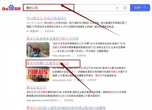 雅安瑪*雅汽車服務(wù)有限公司百度關(guān)鍵詞排名最快上詞效果展示