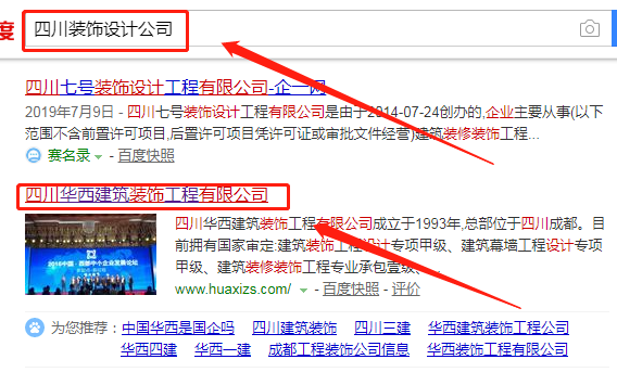 我們公司與 四川華西建筑裝飾工程有限公司合作中,對這個公司所經營的裝飾設計這個行業提供了百度快照排名,與改公司的合作,更多的客戶讓我們公司為其提供百度快照排名,通過每一次合作,我們公司不斷完善自己,同時希望合作伙伴在經營的路上越來越好。