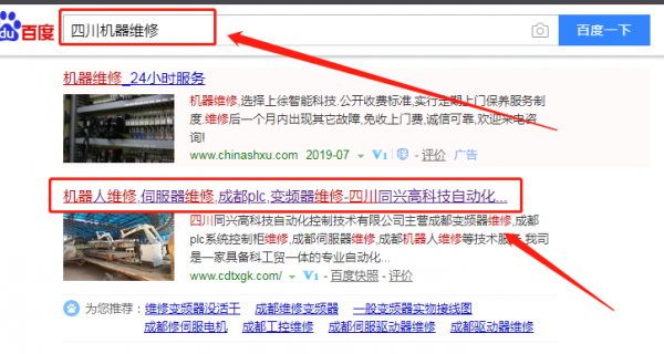 四川同興高科自動化控制技術有限公司選用我司企業美容行業的網站優化產品,其SEO關鍵詞有變頻器維修,成都plc,伺服器維修,機器人維修。定制有針對性的SEO優化執行方案,根據盈利模式和核心產品選擇更適合的精準關鍵詞。配備專業SEO優化團隊,項目前期做好市場、企業定位、目標用戶、盈利模式分析。四川同興高科自動化控制技術有限公司成立于2016年,是經成華市場監督管理局審核的有資質的公司,其統一社會信用代碼:91510108MA61X4MW1H。公司地址:成都市成華區東三環路二段寶耳路2號第2號辦公樓1樓A1號。