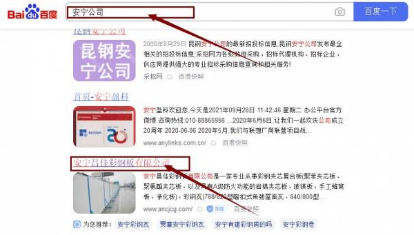 我們公司與安寧昌*彩鋼板有限公司合作中,對這個公司所經營的金屬制品這個行業提供了關鍵詞搜索排名,同時讓我們積累到更多的經驗,與安寧昌*彩鋼板有限公司這個公司建立了友好的合作伙伴的關系,也提高了海洋網絡在同行業的知名度,提高了安寧昌*彩鋼板有限公司在同行業的知名度,發展越來越好。