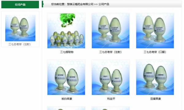 楚雄云植藥業(yè)有限公司選用我司企業(yè)中西藥品行業(yè)的網(wǎng)站優(yōu)化產(chǎn)品,其SEO關(guān)鍵詞有 三七總皂苷,燈盞花素,巖白菜素,三七提取物,利血平,豆腐果素,燈盞花素。其特點是用很合適的展示方式、展示效果、站點框架,把客戶及其用戶很關(guān)心的問題突出表現(xiàn);并以簡潔明朗的設(shè)計風格,清晰展現(xiàn)公司水平實力,確保一秒抓住目標用戶眼球,給用戶留下良好的第一印象。楚雄云植藥業(yè)有限公司成立于2016年,是經(jīng)楚雄市市場監(jiān)督管理局審核的有資質(zhì)的公司,其統(tǒng)一社會信用代碼:91532300MA6K6X0T6G 。公司地址:云南省楚雄經(jīng)濟技術(shù)開發(fā)區(qū)莊甸醫(yī)藥園區(qū)。