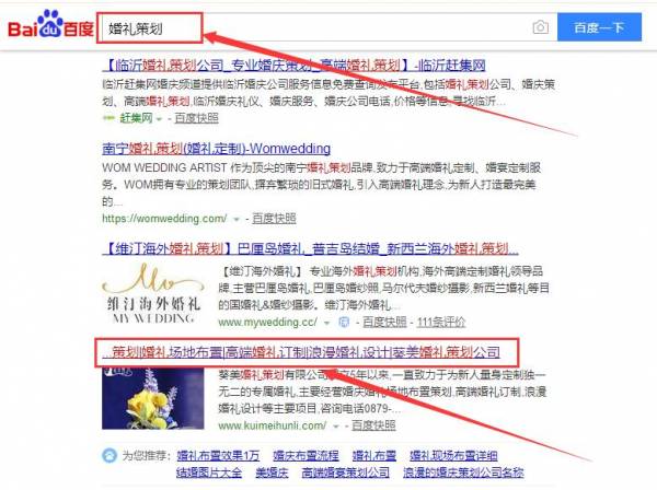 我們公司與葵美婚禮策劃有限公司合作中,對這個公司所經營的婚禮策劃這個行業提供了SEO推廣,與該公司的合作,更多的客戶讓我們公司為其提供SEO推廣,通過每一次合作,我們公司不斷完善自己,同時希望合作伙伴在經營的路上越來越好。