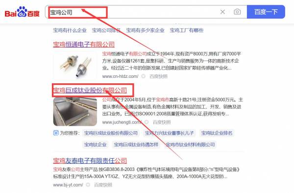 寶雞巨*鈦業股份有限公司網站SEO優化排名效果展示