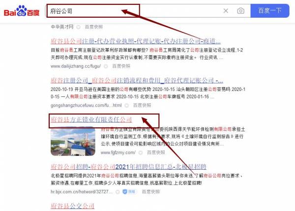 府谷縣方*鎂業(yè)有限責任公司百度關鍵詞排名最快上詞效果展示