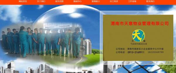 渭南市天*物業管理有限公司選用我司企業地產物業行業的網站優化產品,其SEO關鍵詞有 渭南市天*物業管理有限公司,渭南保潔公司,渭南外墻清洗公司,渭南物業管理公司,渭南物業托管公司。其特點是用很合適的展示方式、展示效果、站點框架,把客戶及其用戶很關心的問題突出表現;并以簡潔明朗的設計風格,清晰展現公司水平實力,確保一秒抓住目標用戶眼球,給用戶留下良好的第一印象。渭南市天*物業管理有限公司成立于2009年,是經渭南市市場監督管理局審核的有資質的公司,其統一社會信用代碼:91610500698**5543A。公司地址:陜西省渭南市高新區中小企業創業中小4樓。