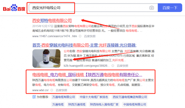陜西萬*電線電纜有限責(zé)任公司選用我司企業(yè)光纖電線的網(wǎng)站優(yōu)化產(chǎn)品,其SEO關(guān)鍵詞有光纖電線。主要針對百度、搜狗、360等搜索引擎進(jìn)行快速排名優(yōu)化服務(wù),關(guān)鍵詞排名必要條件是在搜索結(jié)果前3頁,周期15天內(nèi)可優(yōu)化到搜索引擎首頁。陜西萬*電線電纜有限責(zé)任公司成立于1998年,是經(jīng)西安市市場監(jiān)督管理局審核的有資質(zhì)的公司,其統(tǒng)一社會信用代碼:91610000**26518616。公司地址:陜西省西咸新區(qū)灃西新城馬王街道灃靈路北段88號。