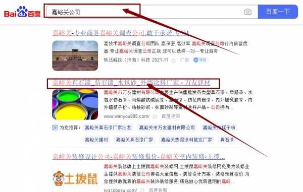 嘉峪關市萬*建材有限公司百度排名效果展示