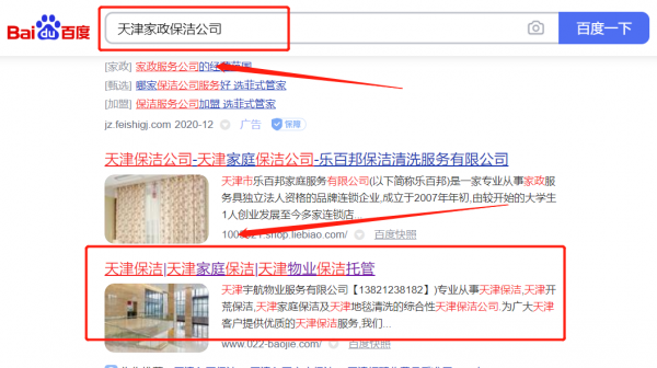 我們公司與天津宇*物業服務有限公司合作中,對這個公司所經營的家政保潔這個行業提供了關鍵詞搜索排名,與該公司的合作,更多的客戶讓我們公司為其提供關鍵詞搜索排名,通過每一次合作,我們公司不斷完善自己,同時希望合作伙伴在經營的路上越來越好。