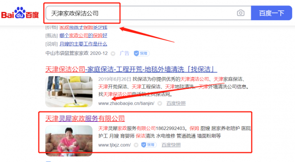 天津靈*家政服務(wù)有限公司關(guān)鍵詞搜索排名案例欣賞