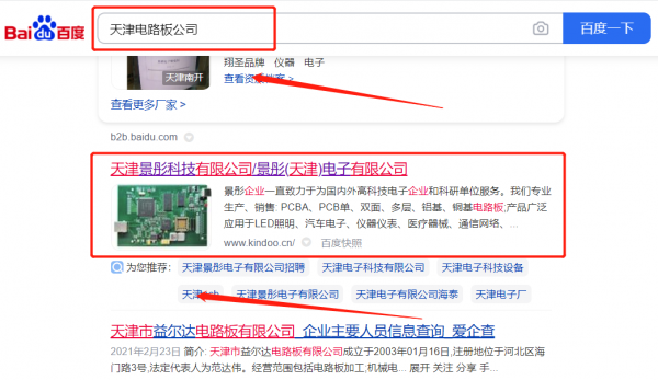 景*(天津)電子有限公司選用我司企業(yè)電路板的網(wǎng)站優(yōu)化產(chǎn)品,其SEO關(guān)鍵詞有電路板。為用戶分析百度、360等SEO優(yōu)化數(shù)據(jù),可全站委托關(guān)鍵詞SEO優(yōu)化外包,在投入成本最小化的同時實現(xiàn)客戶利益的最大化。景*(天津)電子有限公司成立于2018年,是經(jīng)天津市市場監(jiān)督管理局審核的有資質(zhì)的公司,其統(tǒng)一社會信用代碼:91120112M**6GREU8B。公司地址:天津市津南區(qū)雙港鎮(zhèn)工業(yè)園區(qū)優(yōu)谷產(chǎn)業(yè)園45號樓2單元301。